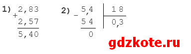 б) (2,83 + 2,57) : 18 = 0,3