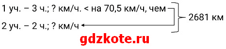 Самолёт пролетел всего 2681 км. Первый участок маршрута он пролетел за 3 ч, а второй – за 2 ч. Найдите скорость самолёта на каждом из двух участков, если скорость на первом участке была на 70,5 км/ч меньше, чем на втором.