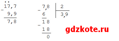 1) 17,7 — 9,9 = 7,8 (км/ч) — удвоенная скорость течения