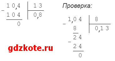 а) 0,104 : 0,13 = 10,4 : 13 = 0,8
