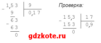 б) 0,153 : 0,9 = 1,53 : 9 = 0,17