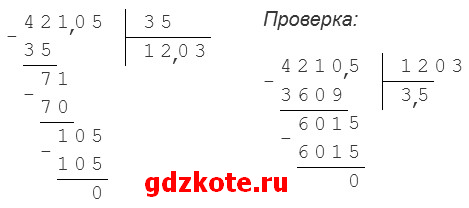 в) 42,105 : 3,5 = 421,05 : 35 = 12,03