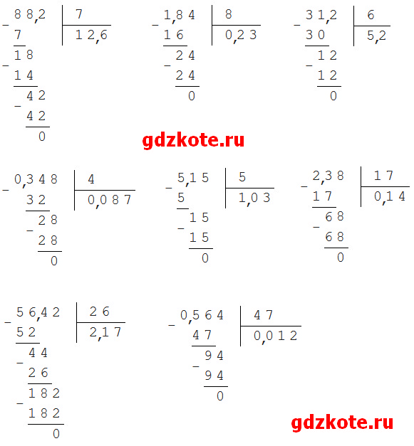 в) 0,312 : 0,06 = 31,2 : 6 = 5,2