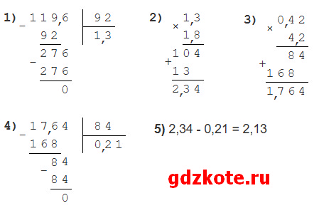 г) 11,96 : 9,2 · 1,8 — 0,42 · 4,2 : 8,4 = 2,13