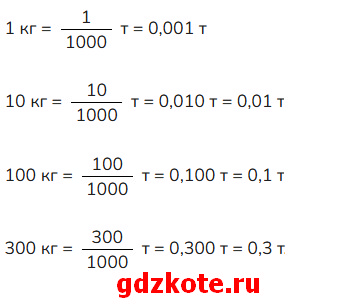 Найдите, какую часть тонны составляют 1 кг, 10 кг, 100 кг, 300 кг.