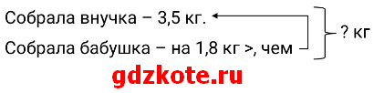 Бабушка с внучкой ходили в лес за малиной. Внучка собрала 3,5 кг малины, что оказалось на 1,8 кг меньше, чем собрала бабушка. Сколько малины собрали бабушка и внучка вместе?