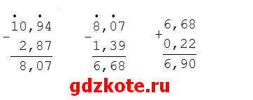 а) 10,94 — 2,87 — 1,39 + 0,22 = 6,9