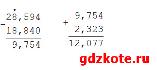 б) 28,594 — 18,84 + 2,323 = 12,077