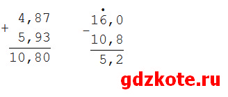 г) 16 — (4,87 + 5,93) = 5,2