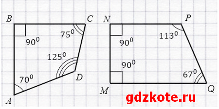 Начертите четырёхугольники АВСD и MNPQ. Измерьте транспортиром их углы, найдите сумму углов в каждом четырёхугольнике. Сделайте предложение о сумме углов в четырёхугольнике.