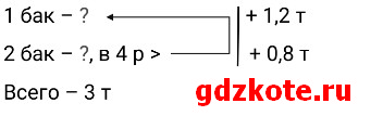 Когда в первый бак добавили 1,2 т топлива, то стало – (х + 1,2) т, и когда во второй добавили 0,8 т, то стало – (4х + 0,8) т топлива.