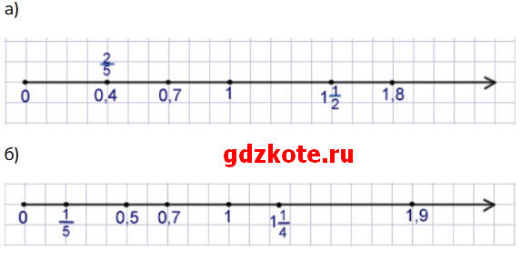 Отметьте на координатном луче с единичным отрезком в 10 клеток точки, координаты которых равны: