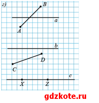 г) Проведите прямую и отрезок так, чтобы: они пересекались; они не пересекались; отрезок лежал на прямой.