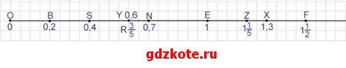 На координатном луче отметьте точки В (0,2), S (0,4), F (), Х (1,3), Е (1), N (0,7), R (1 1/2) , У (0,6), Z (1 1/5), если за единичный отрезок принято 20 клеток.